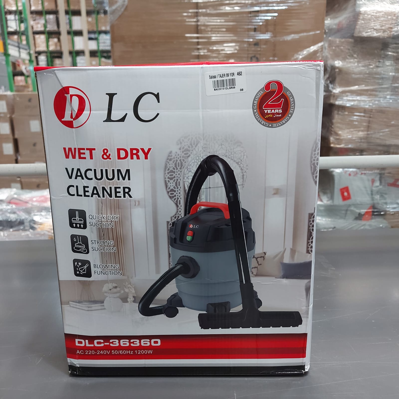 مكنسة DLC الرطب والجاف 1200W هي أسرع حل لتنظيف المويه، الطين، والتسريبات بدون تعب.