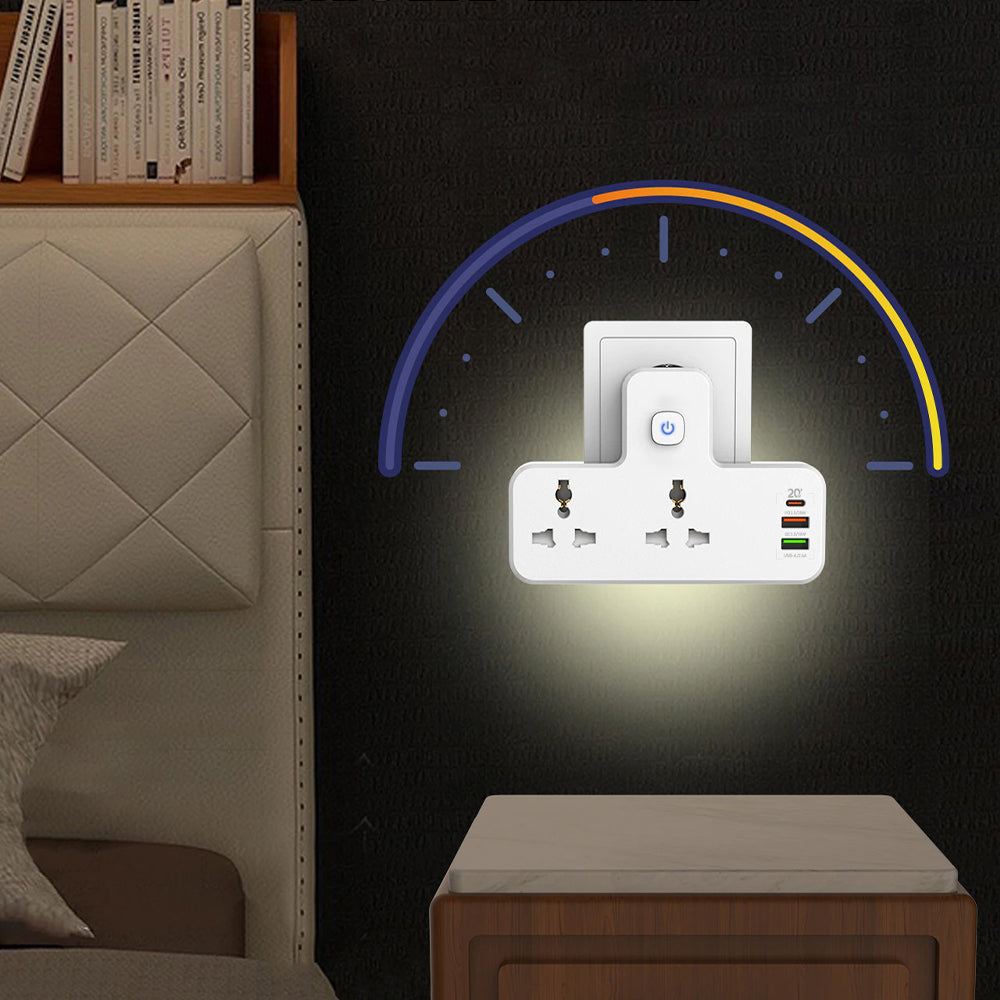 🔌 Multi-Socket Fast Charging Wall Adapter with LED Night Light