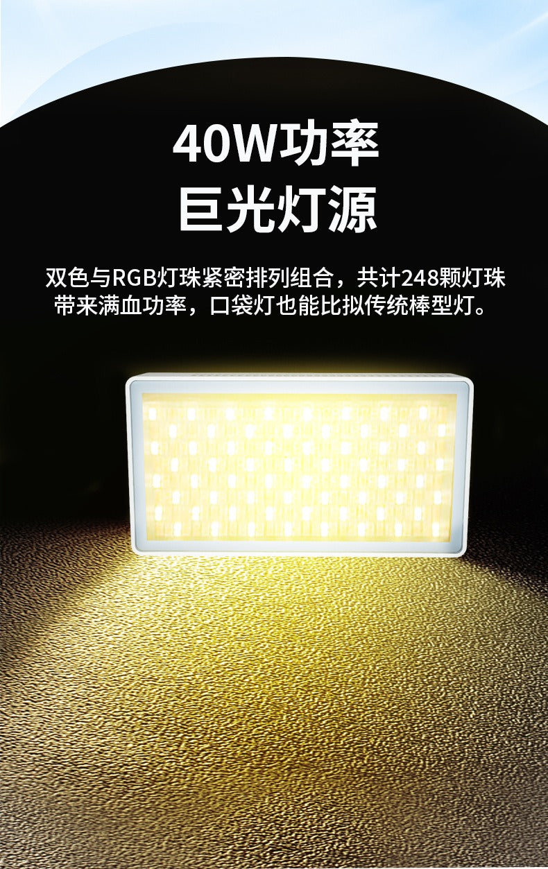 مصباح التصوير RGB PB40R هو الحل الذكي لكل صانع محتوى، بث مباشر، مكياج، أو تصوير منتجات 📸✨